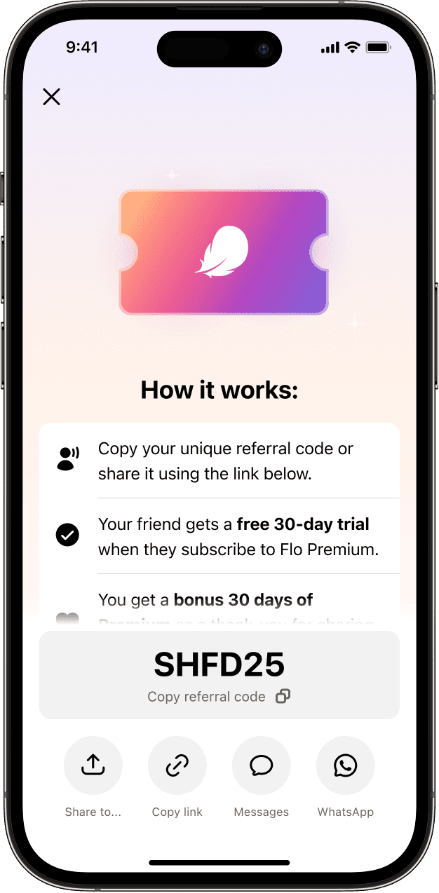 Flo is one of the world’s leading women’s health apps, with a large and highly engaged user base. That scale made referrals a promising untapped growth channel but only if the experience felt valuable for both sides and commercially viable for Premium growth.