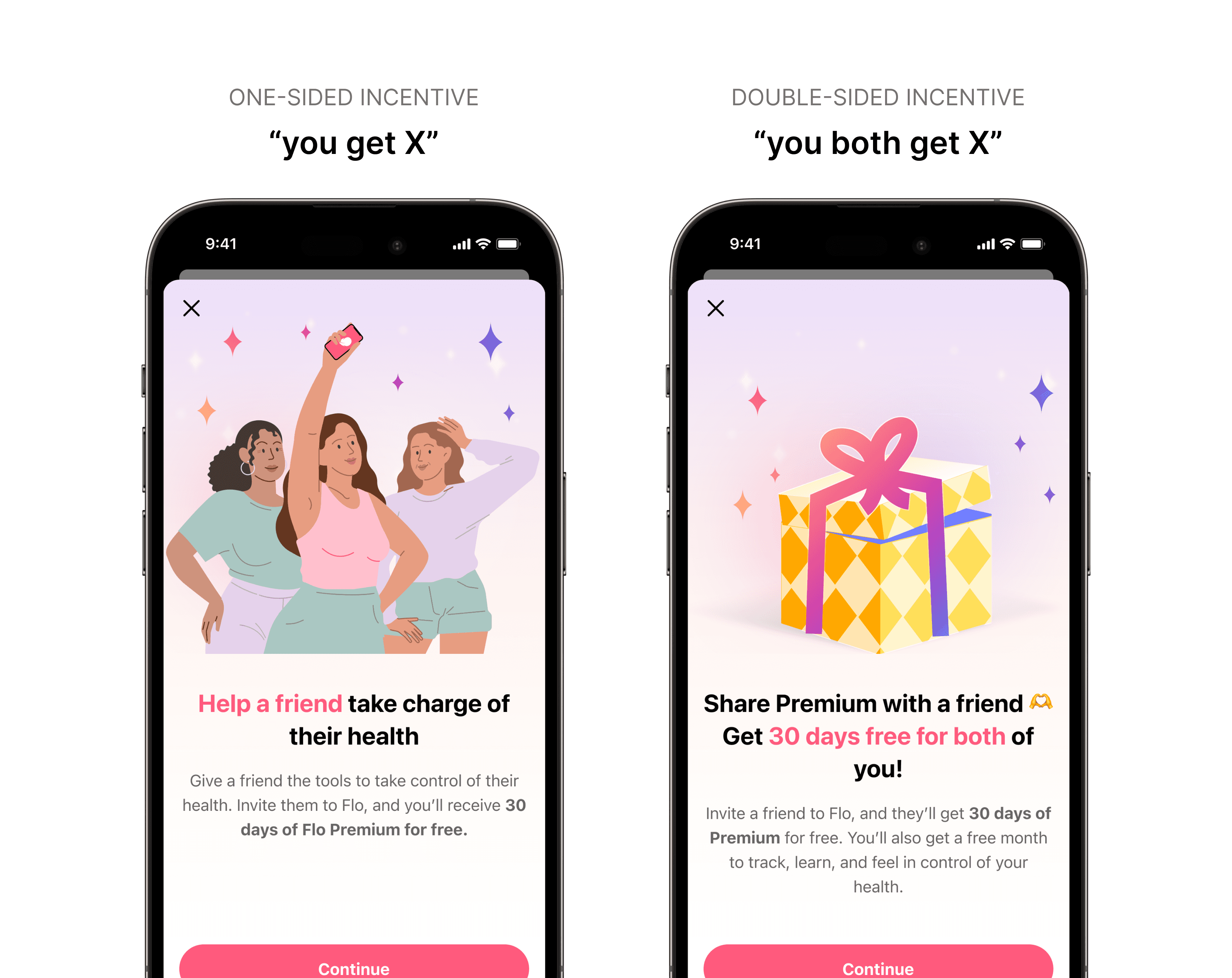 Early fake door experiments showed that users were more likely to share a code/promote Flo if something was in it for them