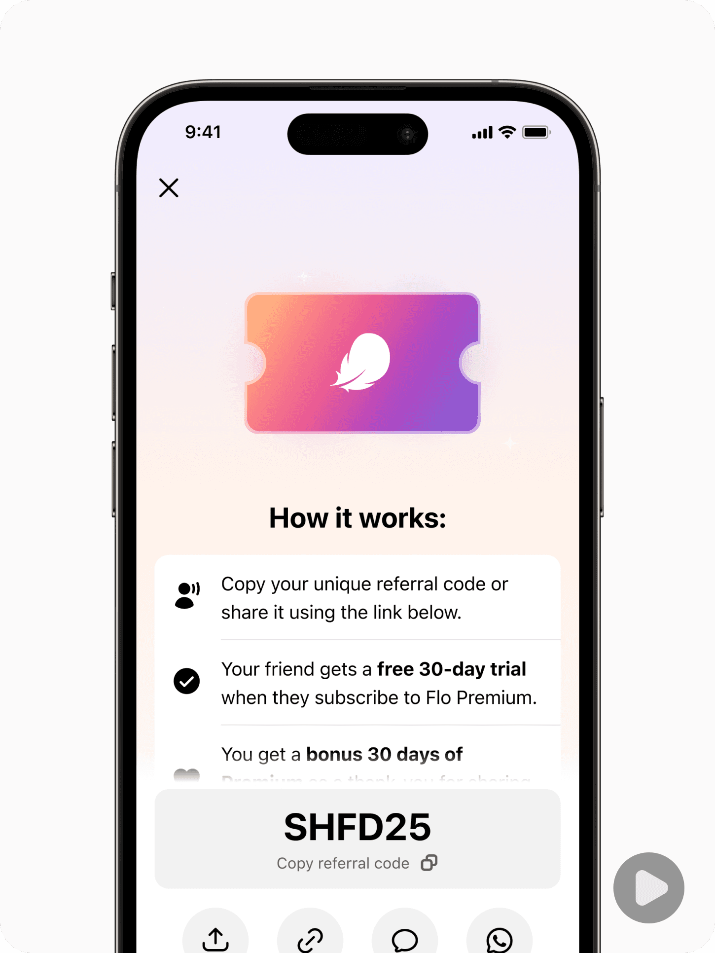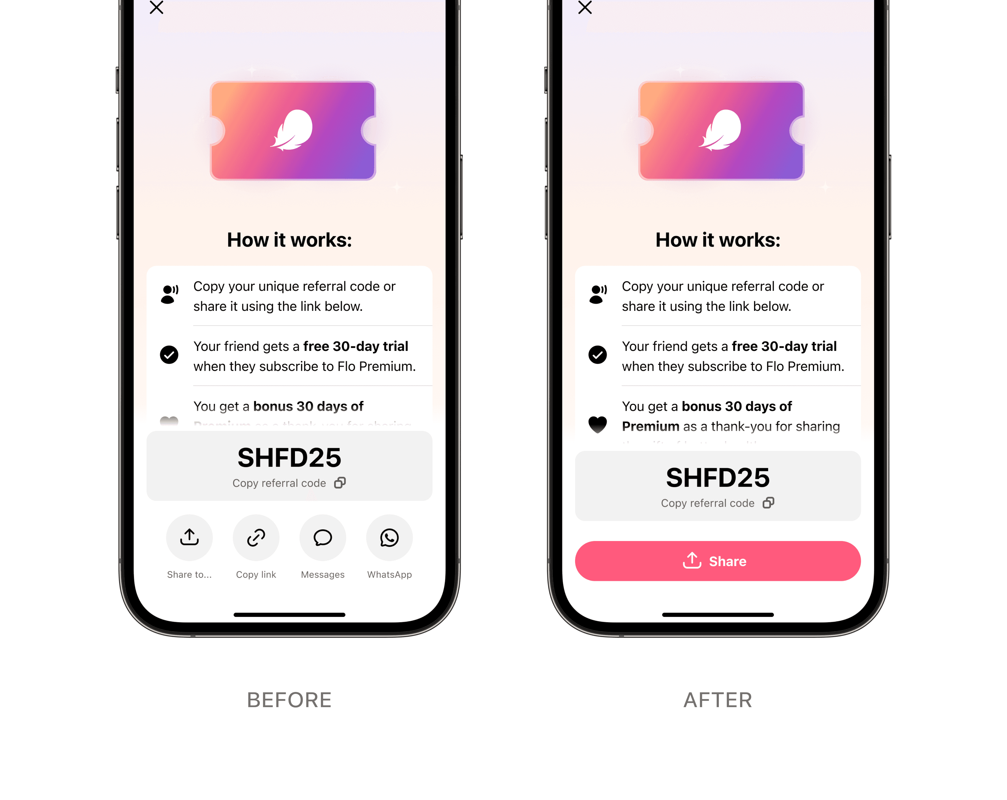 When the referral is claimed, both users get 30 days of Flo Premium free.